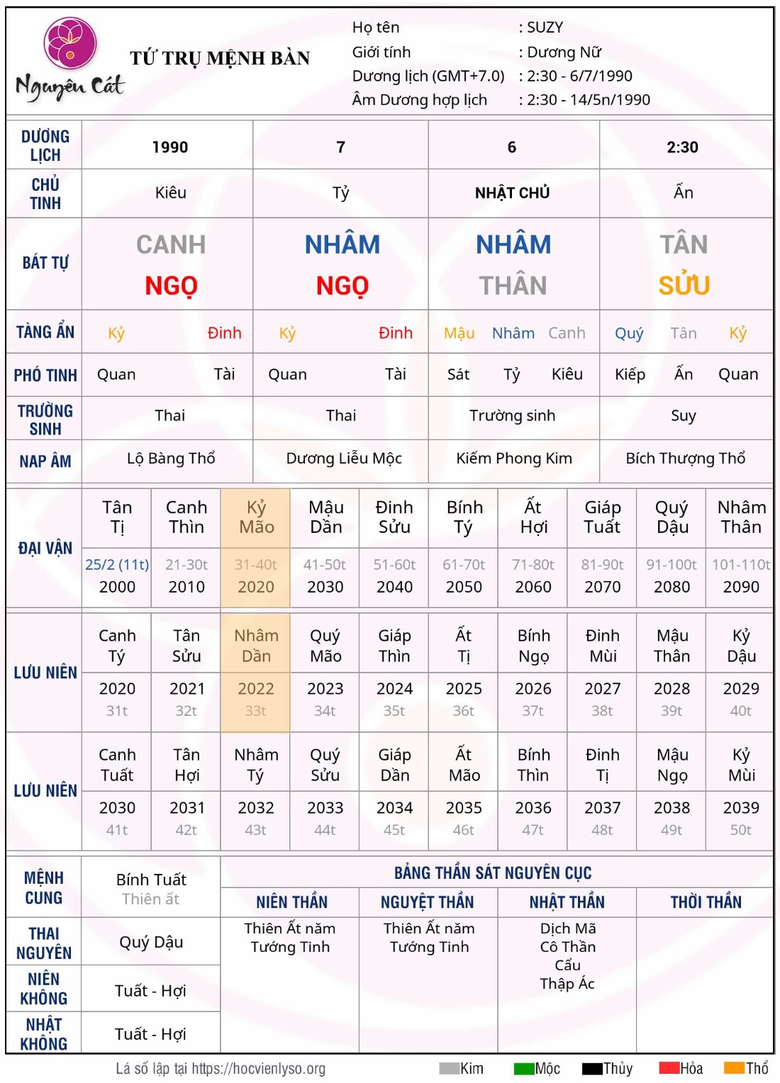 2/ Vận Thân trở đi sẽ ổn, nhưng mà phải qua bò đến vận Thủy được thì mới khá thật sự. Số nói nó theo dạng là không được thời thế, được vận nhưng không được thời. Có thể không làm, cho chồng làm kinh tế chính, ở nhà nội trợ cũng khá ổn.