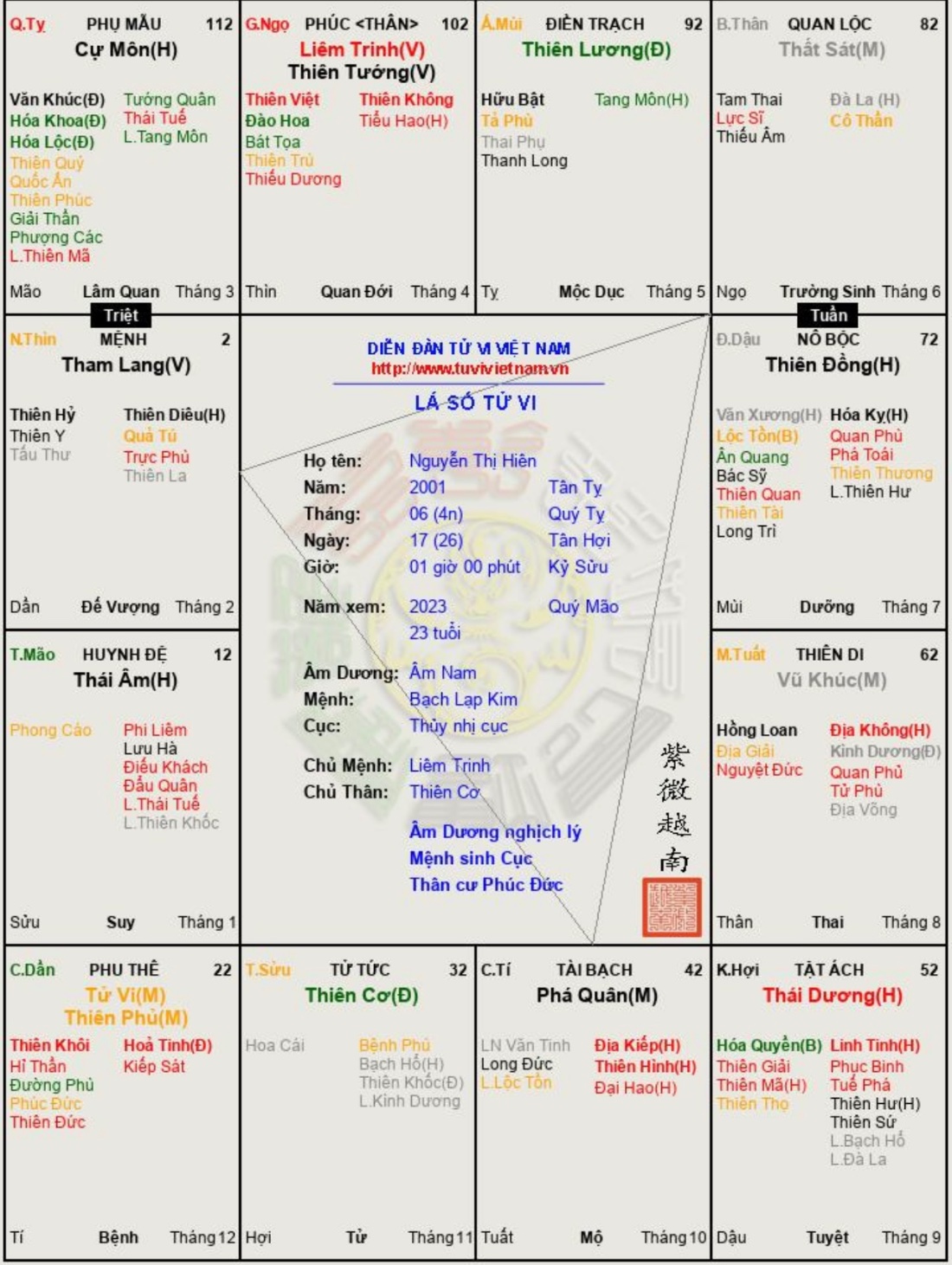 Đây là chuyên mục dành cho việc xem lá số tử vi. Các bài mang tính trao đổi học thuật xin vui lòng đăng trong mục Kiến thức tử vi.