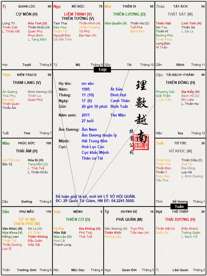 Đây là chuyên mục dành cho việc xem lá số tử vi. Các bài mang tính trao đổi học thuật xin vui lòng đăng trong mục Kiến thức tử vi.