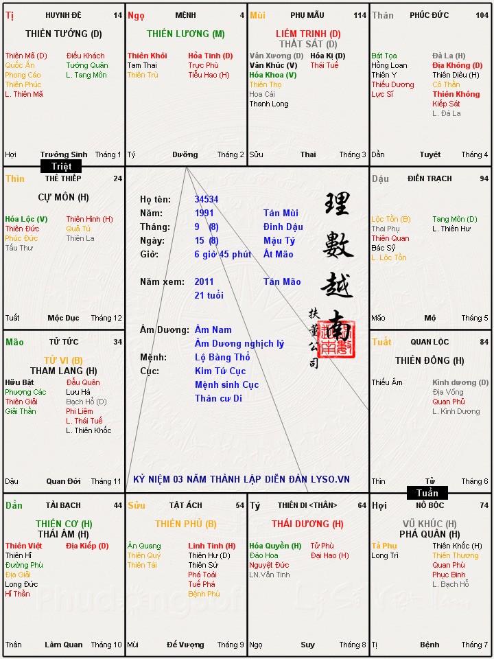 Đây là chuyên mục dành cho việc xem lá số tử vi. Các bài mang tính trao đổi học thuật xin vui lòng đăng trong mục Kiến thức tử vi.
