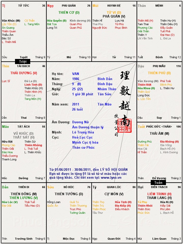 cháu đọc khá nhều trả lời của bác Đỗ Minh Thông cho mọi người,càng đọc càng thấy bác luận hay.Hôm nay cháu cũng mạo muộn xin bác xem cho là số của cháu. Cháu hy vọng có duyên đc bác xem cho lá số VCD không mấy tốt dẹp này.Cháu cảm ơn bác!!!