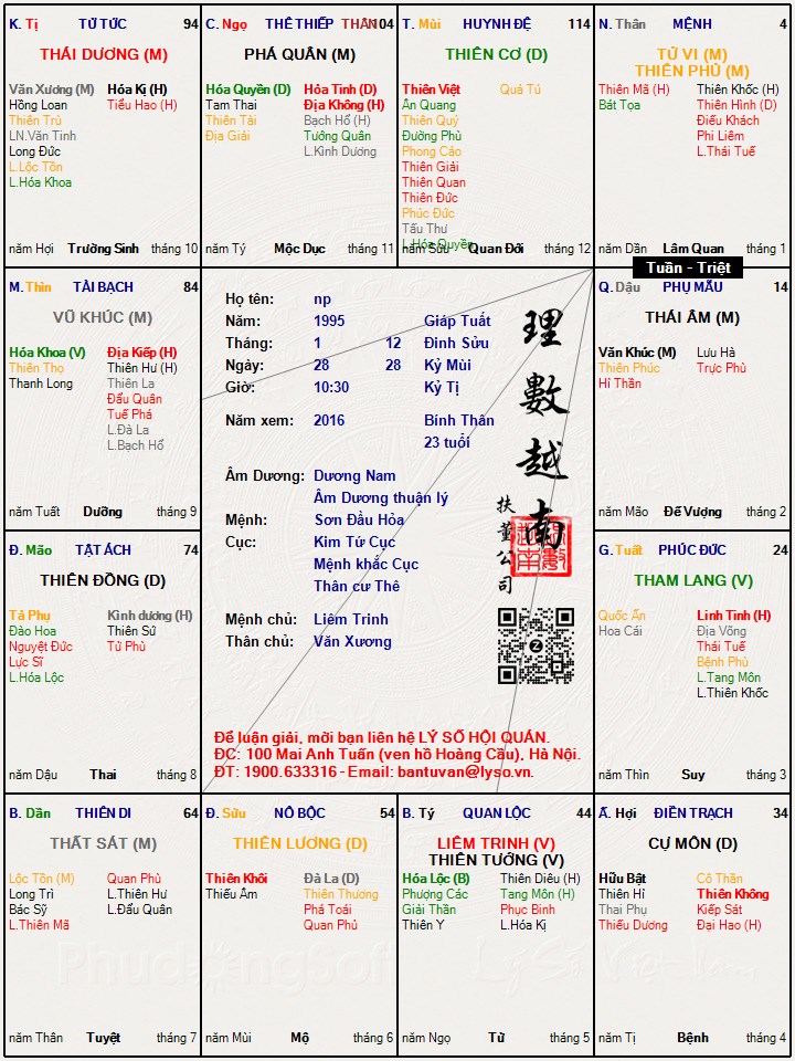 Không dám nhận thông minh + số sướng mà ngược lại rất lận đận.Mặc dù không phù hợp với tiêu chí của bác sỹ nhưng rất mong được bác sỹ xem giúp lá số.Sắp tới không có gì tiến triển chắc đi gặp bác sỹ quá :(
