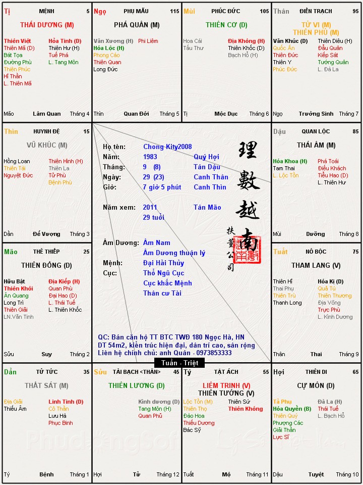 Đây là chuyên mục dành cho việc xem lá số tử vi. Các bài mang tính trao đổi học thuật xin vui lòng đăng trong mục Kiến thức tử vi.