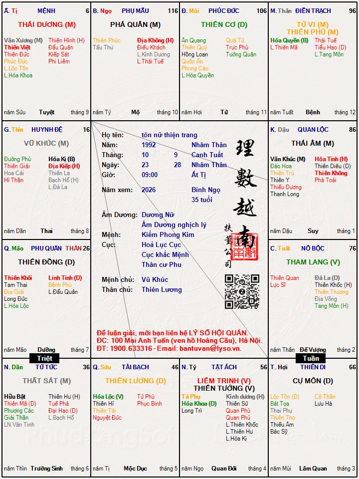 còn em gái cháu là tôn nữ thiện trang sinh ngày 28/09/1992 âm lịch giờ sinh là 9 giờ sáng