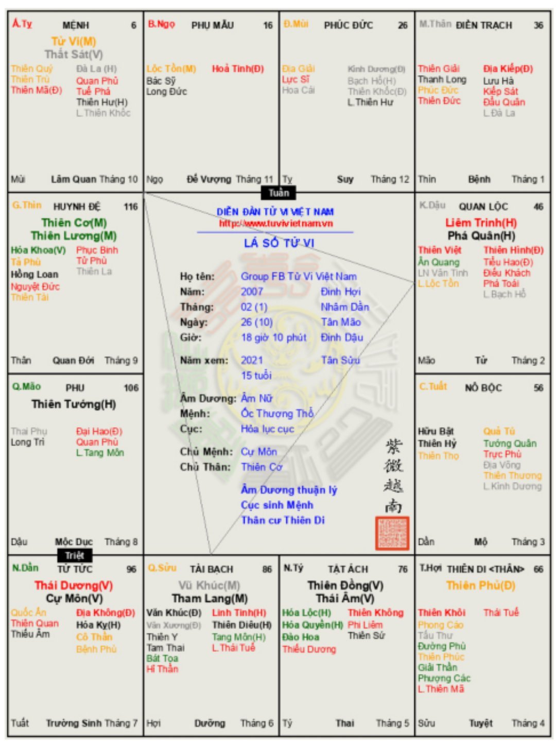 Đây là chuyên mục dành cho việc xem lá số tử vi. Các bài mang tính trao đổi học thuật xin vui lòng đăng trong mục Kiến thức tử vi.