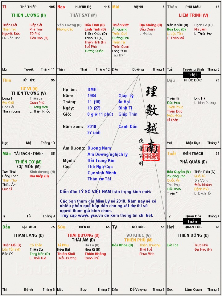 Đây là chuyên mục dành cho việc xem lá số tử vi. Các bài mang tính trao đổi học thuật xin vui lòng đăng trong mục Kiến thức tử vi.