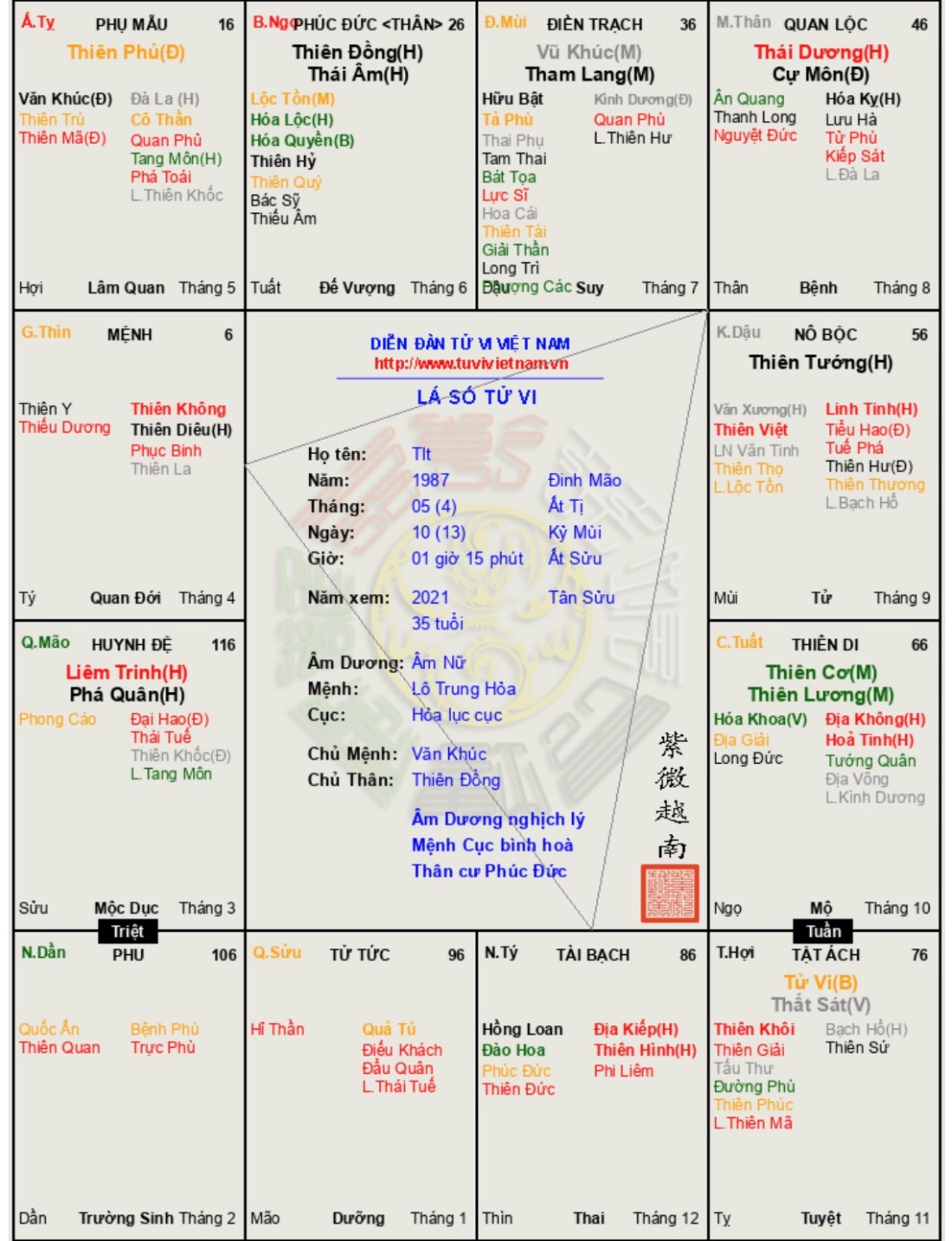 Đây là chuyên mục dành cho việc xem lá số tử vi. Các bài mang tính trao đổi học thuật xin vui lòng đăng trong mục Kiến thức tử vi.