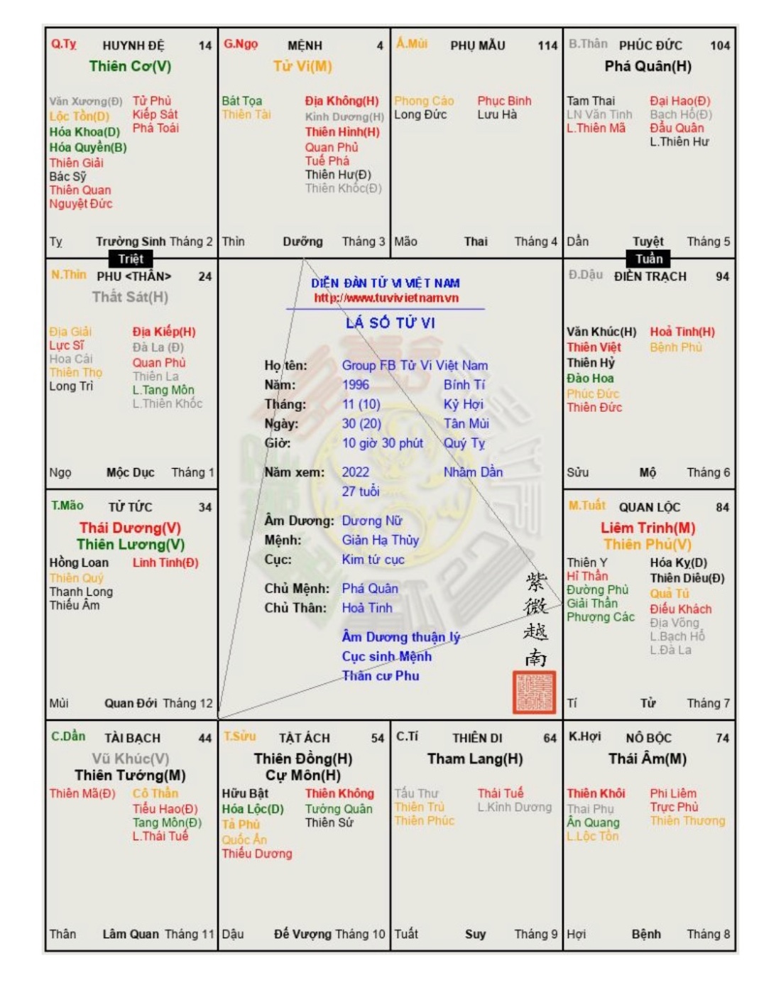 Đây là chuyên mục dành cho việc xem lá số tử vi. Các bài mang tính trao đổi học thuật xin vui lòng đăng trong mục Kiến thức tử vi.