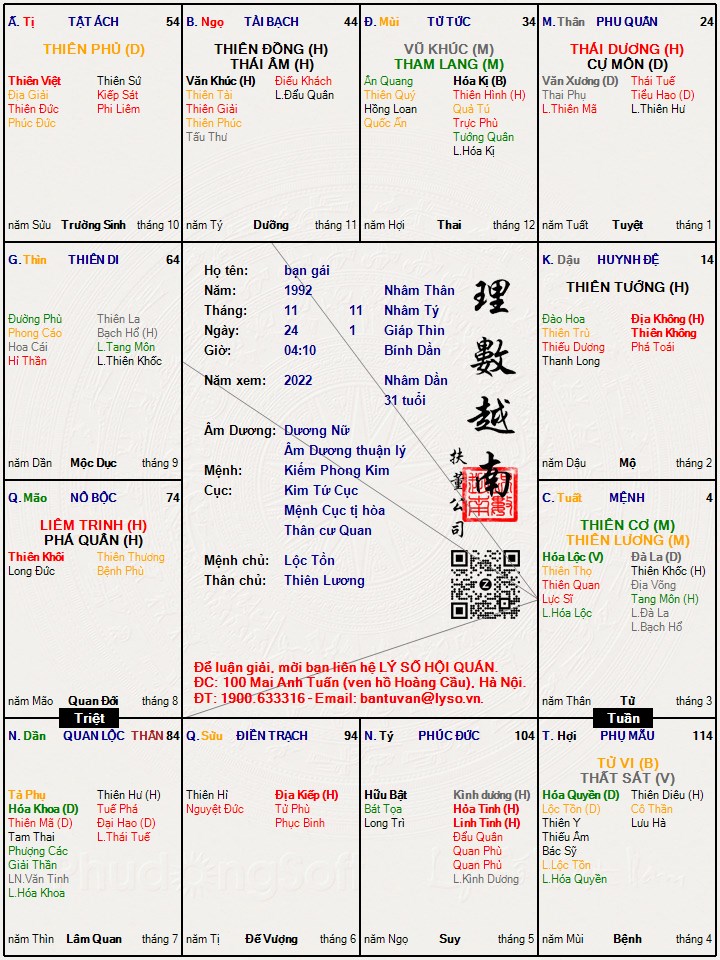 Lá số bạn nữ:
