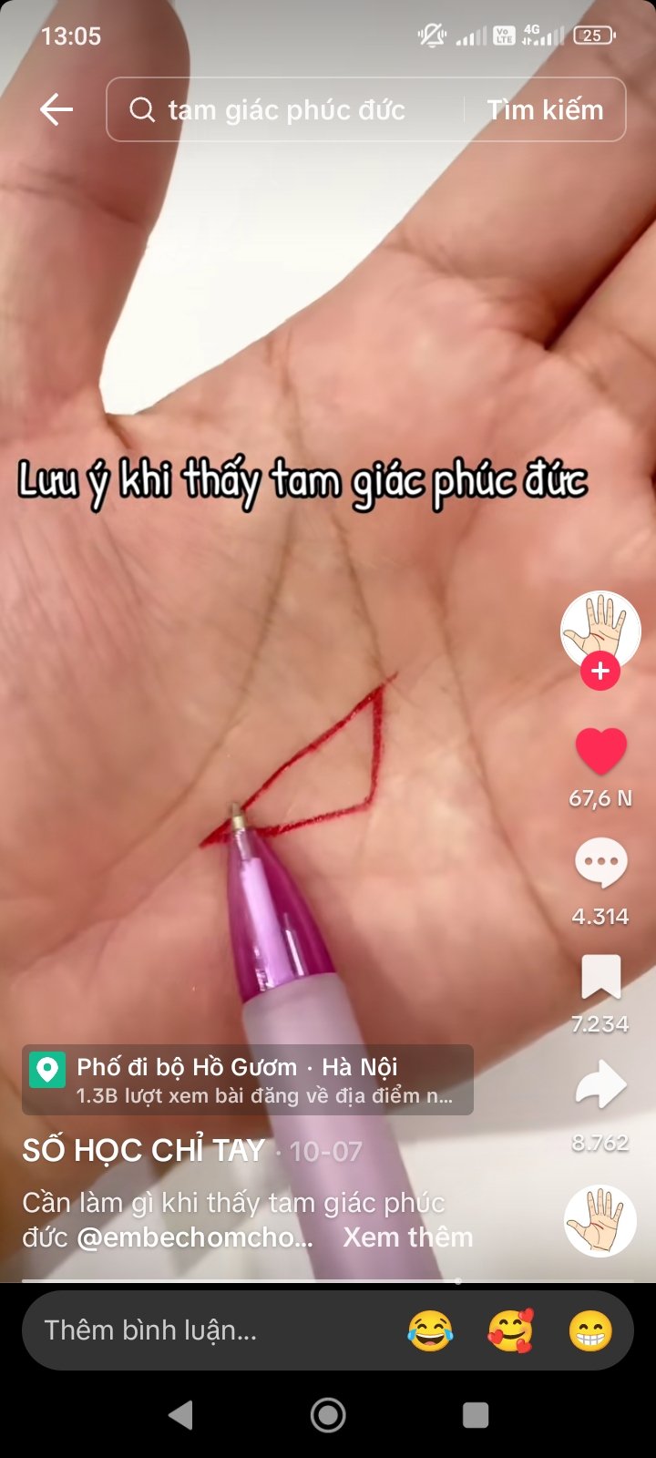 Ôi, em vừa phát hiện ra một điều thú vị nữa! Cả hai tay của em đều có chỉ tay tam giác phúc đức.