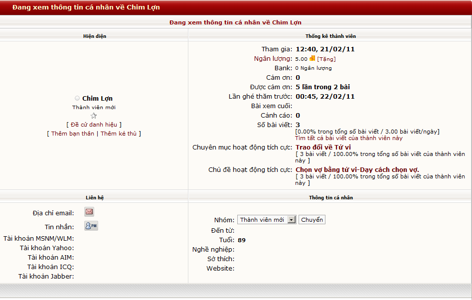Tôi vốn muốn thôi, nhưng lại có lời "kích bác cá nhân", nên tôi phải nói một lời.Chim Lợn đã viết:Lão phu xin cáo lỗi với chú WhiteBear, bởi vì thấy chuyện ngang tai nên phải mở miệng. Bởi dù sao, thì cũng nên lên tiếng một lần, để cho mọi người thấy. Chứ kẻo rồi lại cứ tâng bốc nhau, mẹ hát con khen nhìn con CÚ lạ thành con CÔNG thì khổ cho thiên hạ.