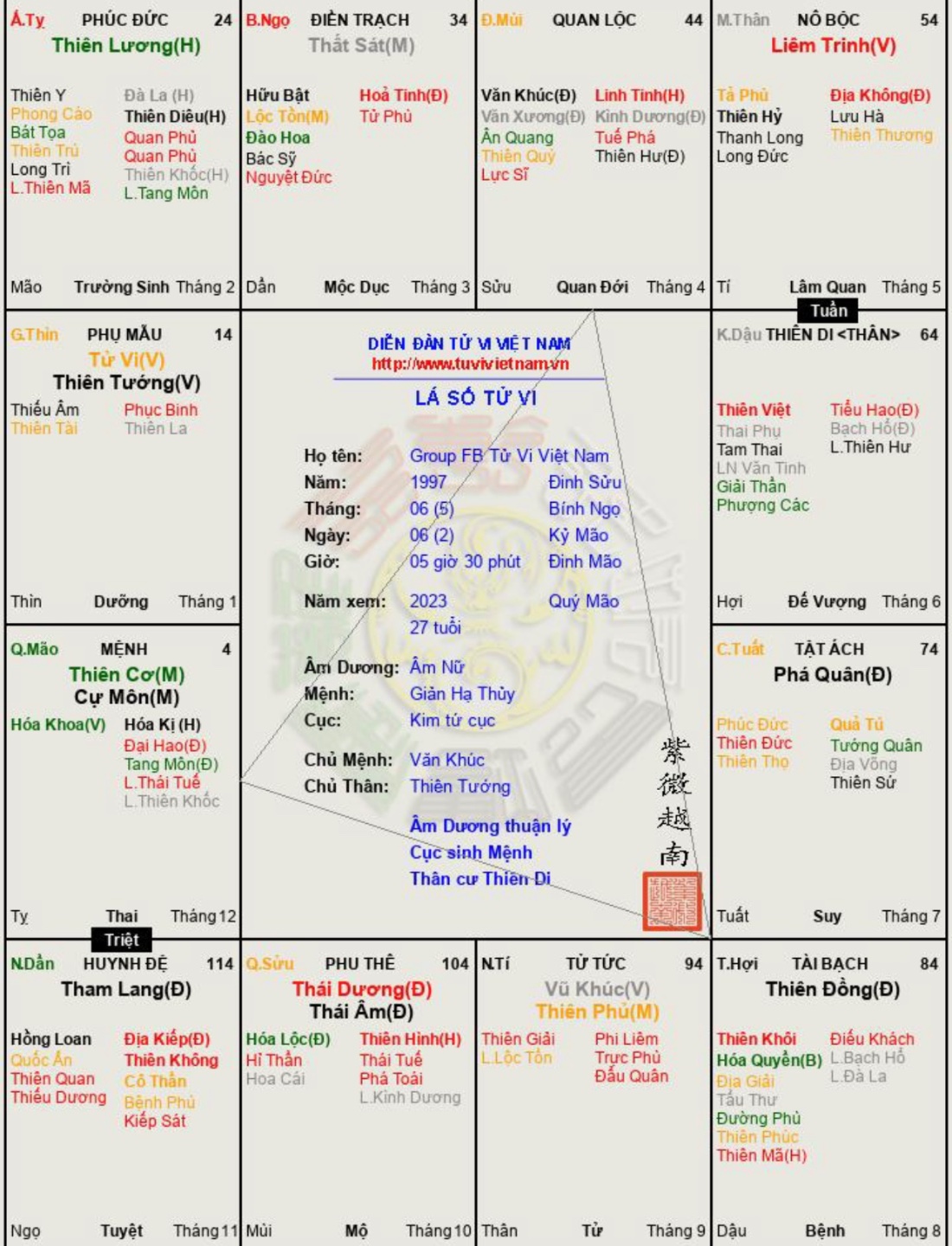 Đây là chuyên mục dành cho việc xem lá số tử vi. Các bài mang tính trao đổi học thuật xin vui lòng đăng trong mục Kiến thức tử vi.