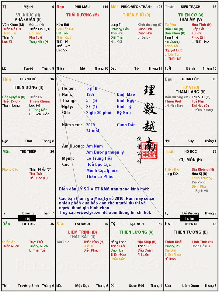 Đây là chuyên mục dành cho việc xem lá số tử vi. Các bài mang tính trao đổi học thuật xin vui lòng đăng trong mục Kiến thức tử vi.