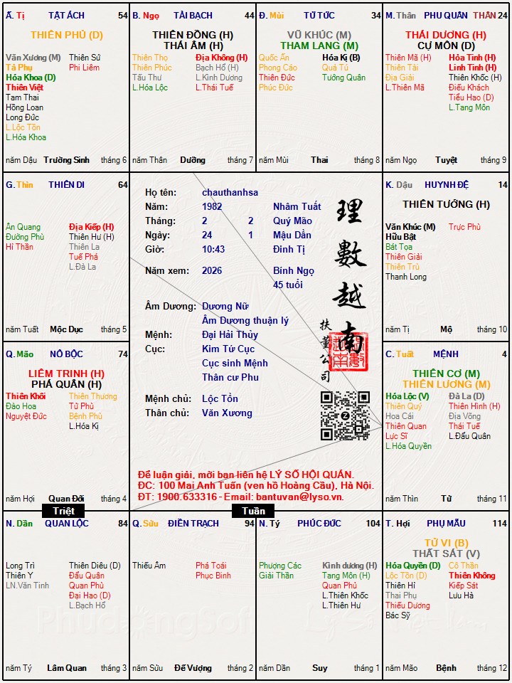 ơ quên mất, nhờ manhtu nghiên cứu một lát lá số của mình đc ko? có thể chấm vài lời đc ko??