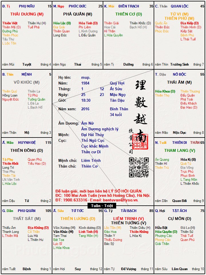 Bạn thử post ls lên xem saonhatmaiMEO đã viết:Chào các bac! Cho em tham gia với. bản thân em cũng mệnh Vũ , Thân Tham ngộ cô quả. Thân mệnh thif không tuần triệt mà tuần triệt ở tài....đào hoa lắm chỉ chuốc thị phi ,tiền thì bỏ bao công sức cũng chỉ vừa không bị chết đói thôi ạ