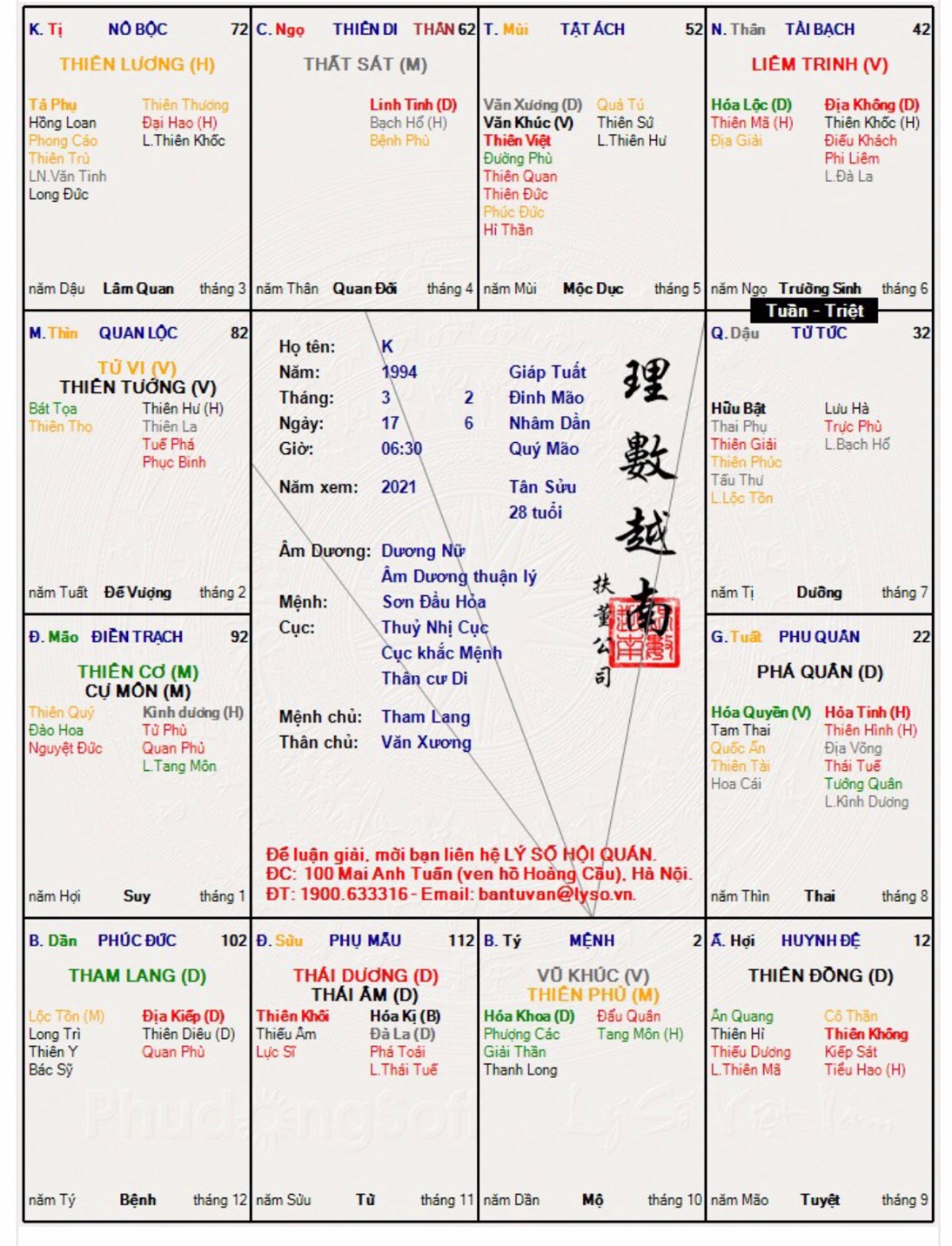Ok, cuối tuần rảnh anh xem chi tiết nhé. Trước đọc comment của em viết về tuổi thơ của mình anh cứ nghĩ em nói quá. Nhưng nhìn ngày tháng năm giờ sinh này, đúng là không sai đc. Em nhận ra ảnh hưởng của chữ nghiệp trong đời chính là may mắn của em đó. Giờ sinh này theo vệ đà thì cuộc đời em chính là từ chữ Nghiệp (karma) mà sinh. Hạnh phúc hay khổ đau trong đời phụ thuộc vào ý thức của em về nghiệp quả. Tạm thế.