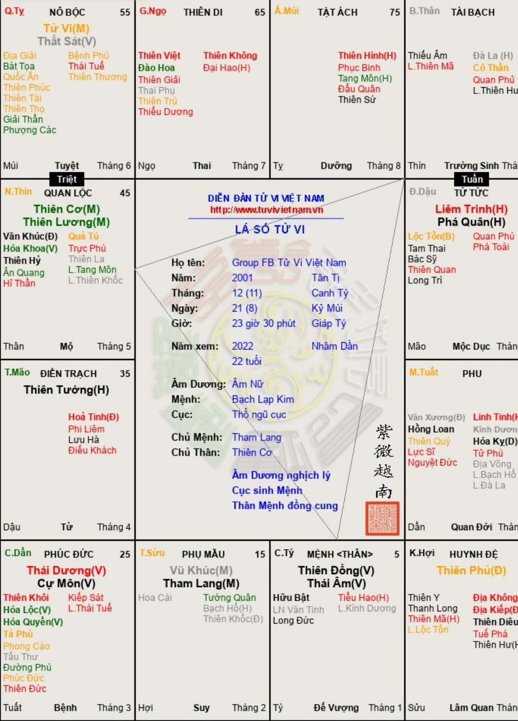 Đây là chuyên mục dành cho việc xem lá số tử vi. Các bài mang tính trao đổi học thuật xin vui lòng đăng trong mục Kiến thức tử vi.