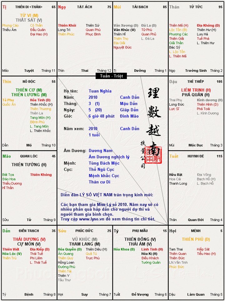 Đây là chuyên mục dành cho việc xem lá số tử vi. Các bài mang tính trao đổi học thuật xin vui lòng đăng trong mục Kiến thức tử vi.