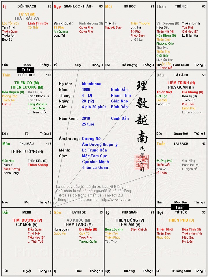 Đây là chuyên mục dành cho việc xem lá số tử vi. Các bài mang tính trao đổi học thuật xin vui lòng đăng trong mục Kiến thức tử vi.
