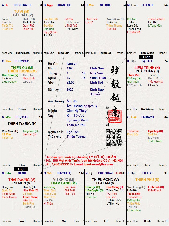 Đây là chuyên mục dành cho việc xem lá số tử vi. Các bài mang tính trao đổi học thuật xin vui lòng đăng trong mục Kiến thức tử vi.