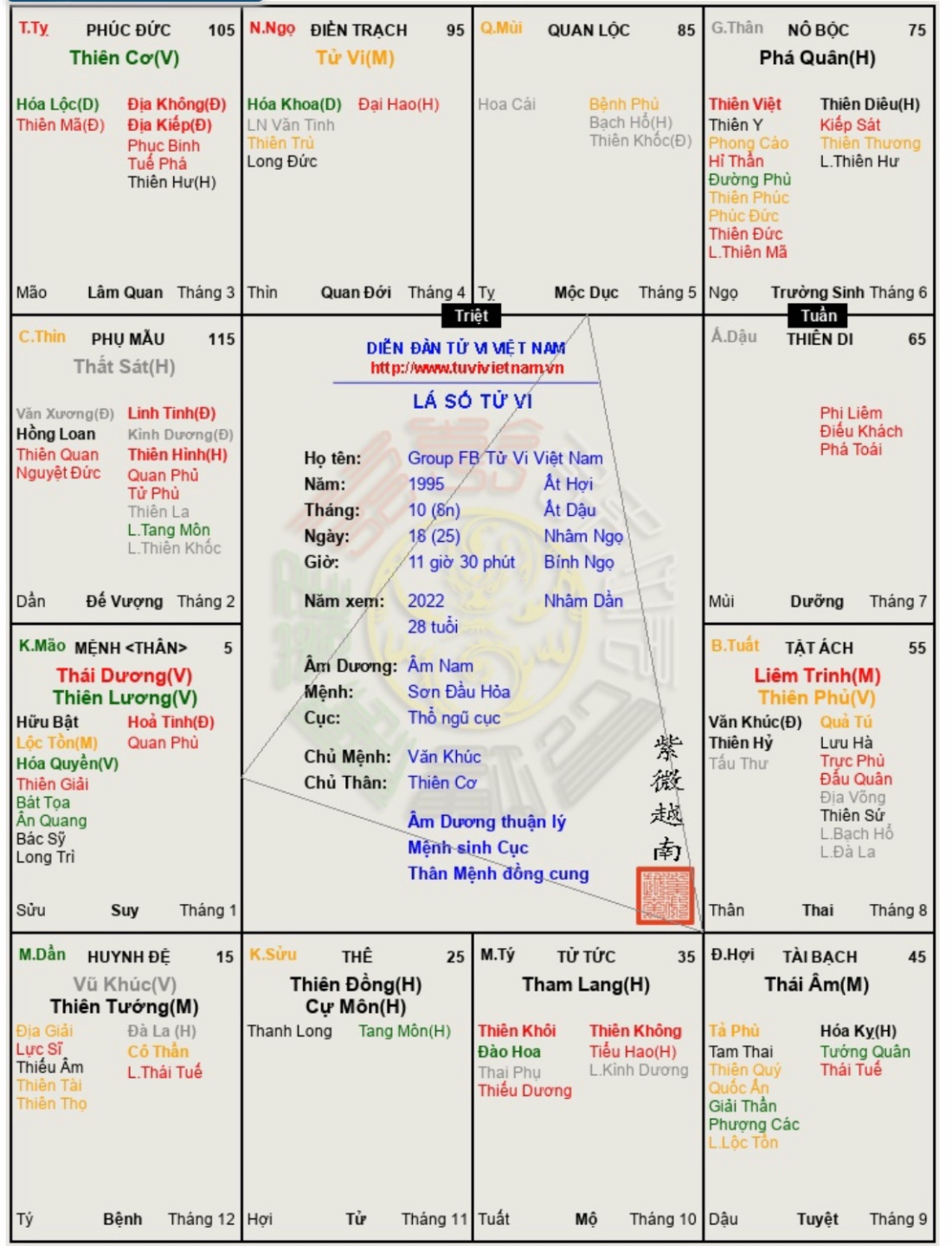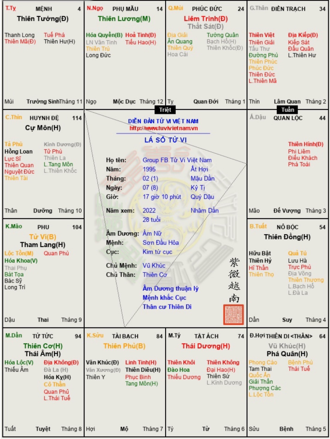 Đây là chuyên mục dành cho việc xem lá số tử vi. Các bài mang tính trao đổi học thuật xin vui lòng đăng trong mục Kiến thức tử vi.