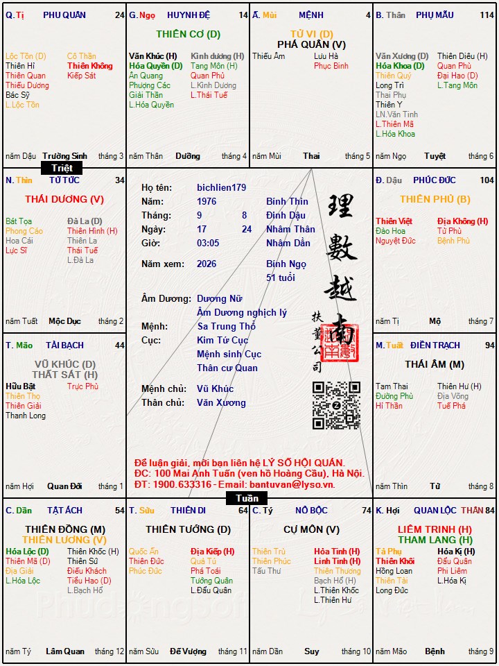 * Bản thân mình mở topic vì tò mò giữa 2 lá số này có "duyên phận" vì với nhau không? Vì sao chủ mệnh của lá số 1 là Vũ Khúc, còn sao chủ mệnh của lá số 2 là Tham Lang. Hiện tại 2 đương số này đã ở rất xa nhau rồi ...