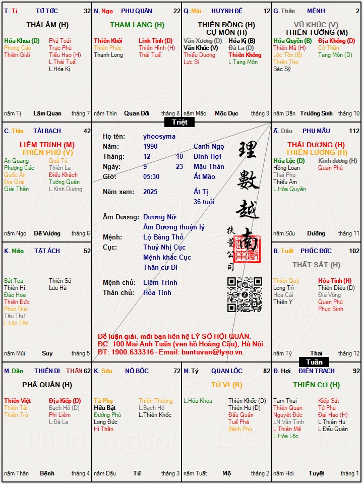 Và nếu lấy ls này thì bạn nên cưới trong đại hạn phu thê vì nhiều sao tốt, cuộc sống vc sẽ tốt hơn vì sang đại hạn tử tức VCD mã khốc khách, hao bạn sẽ gặp vận may và có thể đi lại nhiều: trong ngoài nước nhưng cũng phải hao tổn tâm trí lực nhiều...
