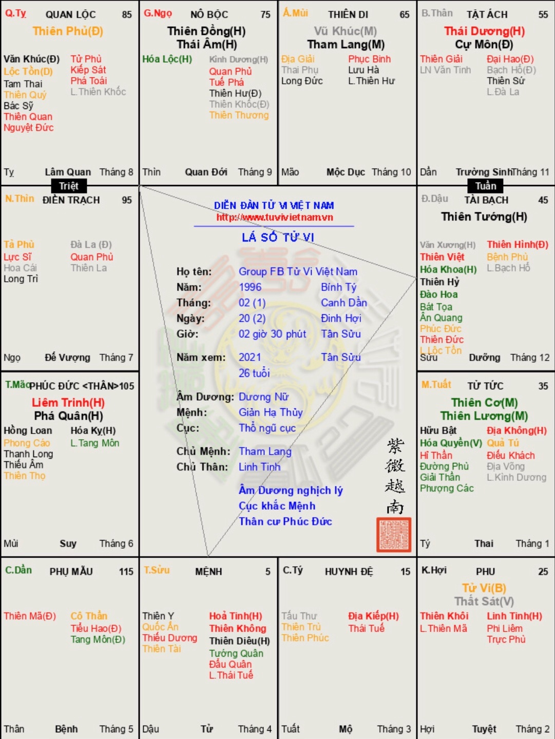 Đây là chuyên mục dành cho việc xem lá số tử vi. Các bài mang tính trao đổi học thuật xin vui lòng đăng trong mục Kiến thức tử vi.