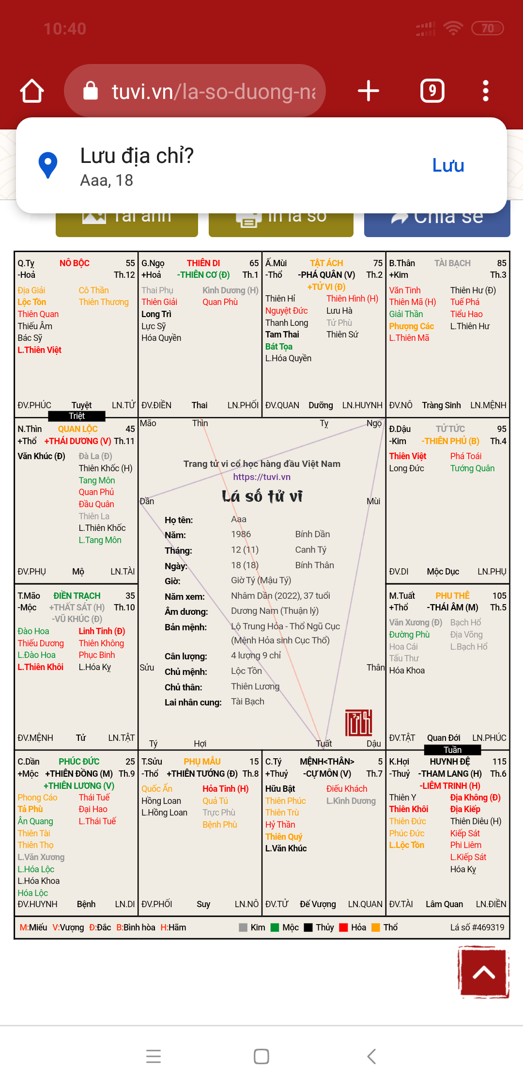 begauhn đã viết: 18:14, 25/11/22Bạn vui lòng post lá số , nếu gặp vấn đề quá bế tắc , thì phải xét thời tiết khi bạn sinh ra , ko phải thời tiết căn cứ theo mùa hoặc lịch , mà là thời tiết đặc thù tại khung giờ bạn đc sinh ra , hướng nhà nơi sinh , nếu là sinh tại bệnh viện thì cần xác định ví trị bệnh viện trên bản đồ , lấy hoàn kiếm làm trung tâm .Đang học xem số đã viết: 11:04, 25/11/22 lasotuvi/2023/JK2VCVZE.jpg