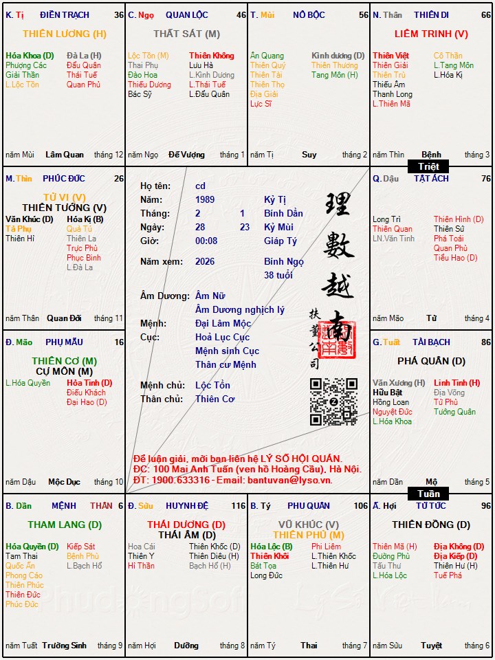 Đây là chuyên mục dành cho việc xem lá số tử vi. Các bài mang tính trao đổi học thuật xin vui lòng đăng trong mục Kiến thức tử vi.