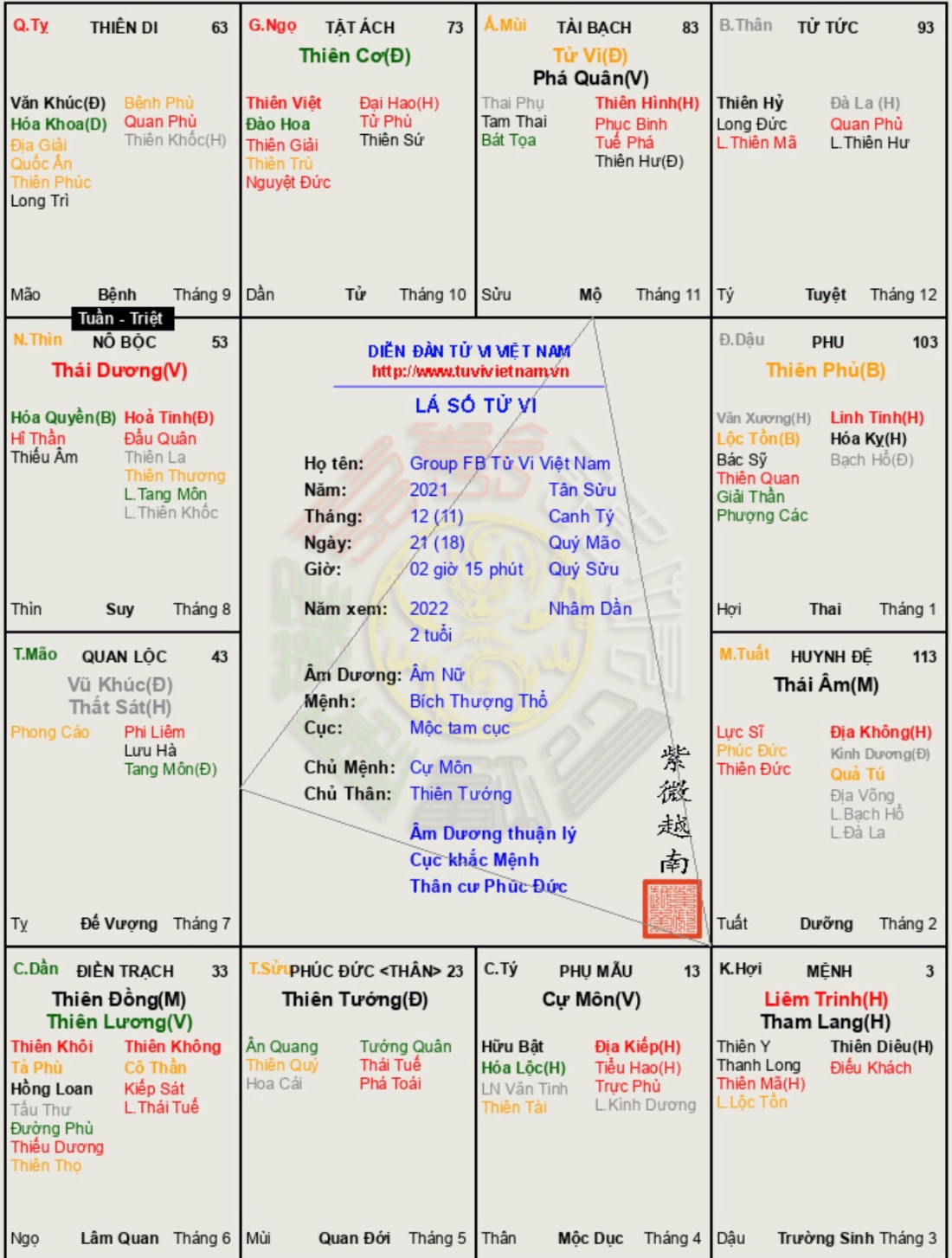 Căn cứ tứ trụ,tôi lấy lá số tử vi của Trương Chấn Hoàn.