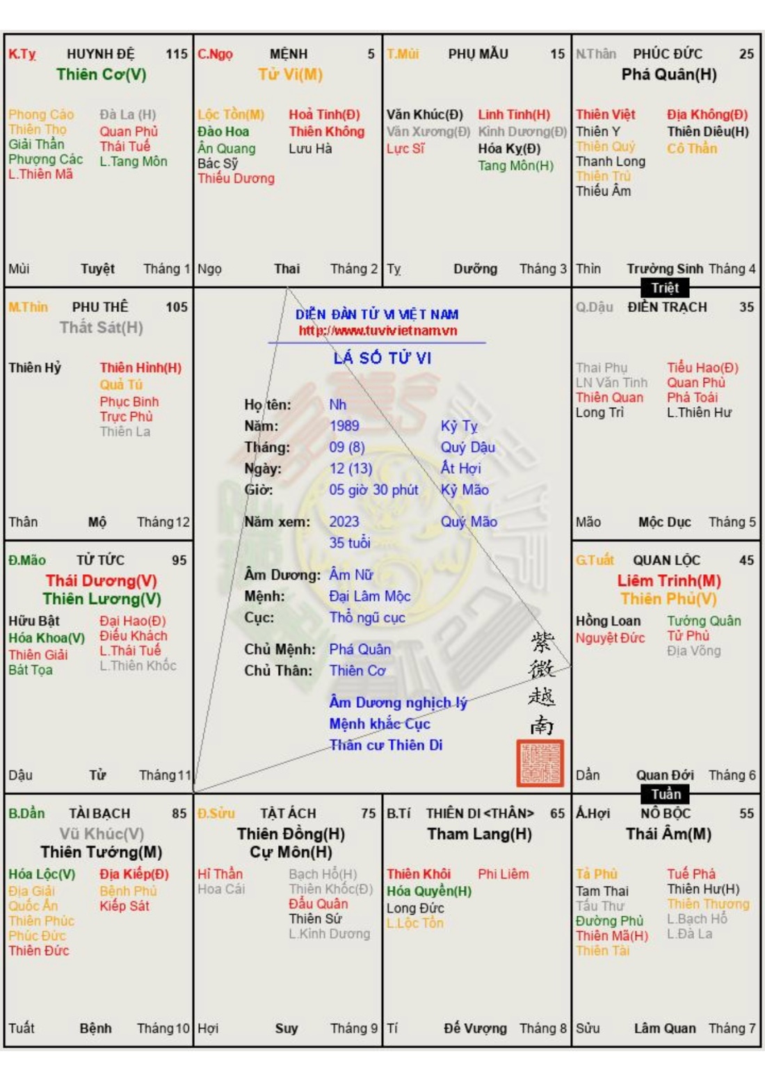 Đây là chuyên mục dành cho việc xem lá số tử vi. Các bài mang tính trao đổi học thuật xin vui lòng đăng trong mục Kiến thức tử vi.