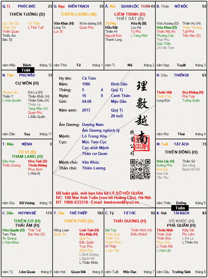 Đây là chuyên mục dành cho việc xem lá số tử vi. Các bài mang tính trao đổi học thuật xin vui lòng đăng trong mục Kiến thức tử vi.