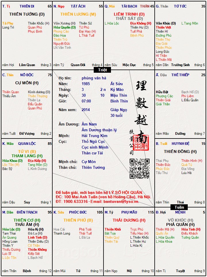 Em nhìn lá số mà ko hiểu gì nên xin phép các bác am hiểu tử vi tướng số chỉ bảo giúp em