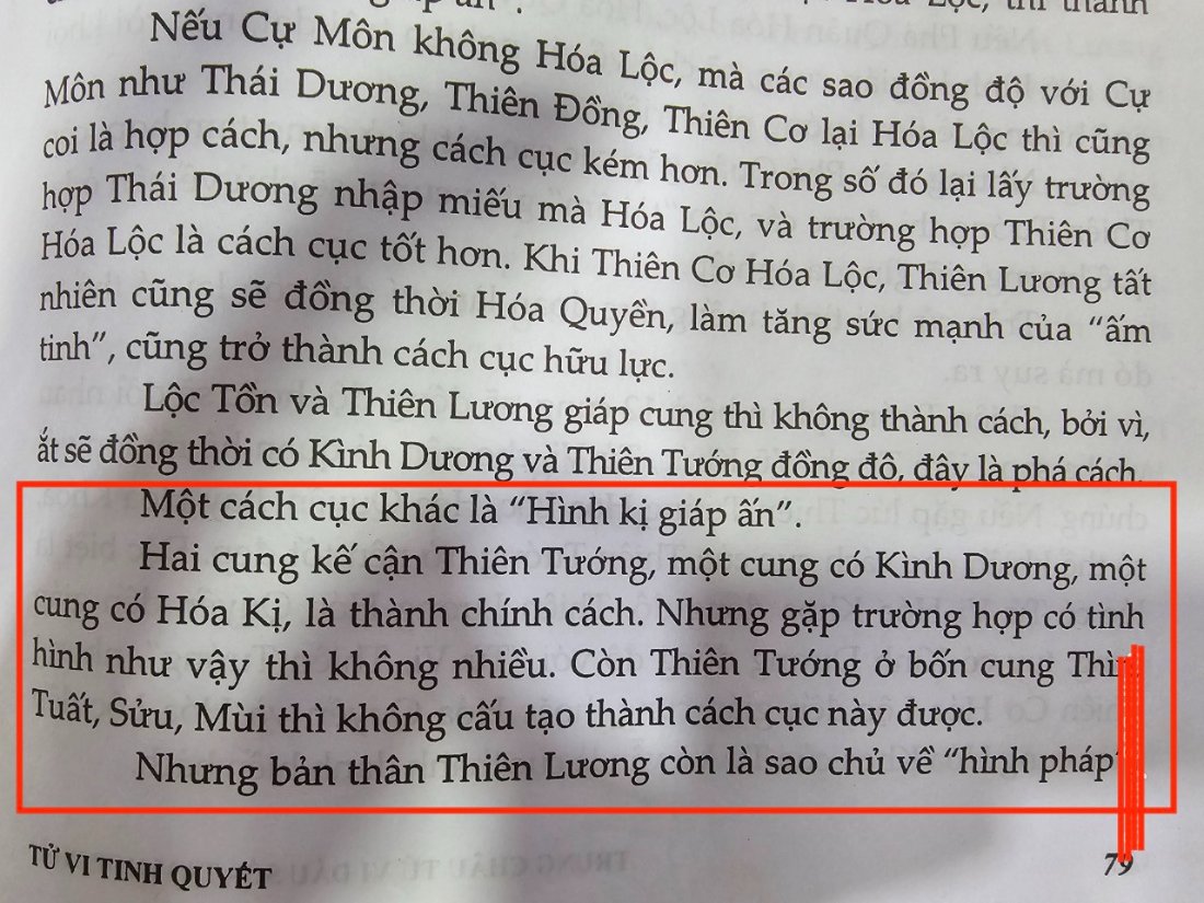 Giải thích một cách ngắn gọn là thiên tướng luôn giáp cự môn và thiên lương, thiên lương không hóa khí thành kỵ nên ám chỉ hình của thiên lương, nghĩa là thiên lương ngộ thiên hình, (thiên lương ấm nhưng sợ thiên hình), cự môn can đinh hóa kỵ chủ thị phi, xấu xa, xui xẻo, lý do của cách cục giáp cung này quan trọng hơn tam hợp xung chiếu là vì đánh giá về môi trường lúc nhỏ, nghĩa là ba mẹ và anh em đồng thời cũng là vận trước 30 (trước 22 cho tới trước 26) ảnh hưởng đến đương số