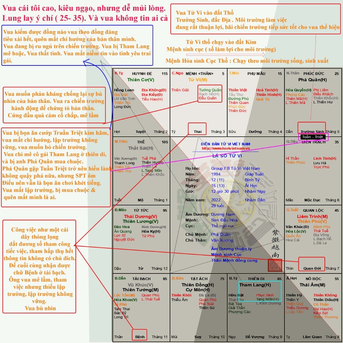 Tính anh thì không thích chửi nhau đâu chú à. Mệnh Tử Vi thì chẳng phải là vua gì đâu, chỉ là cái thể hiện bản chất của chú là Thổ là bệ vệ, là cố chấp, là cương trực đạo mạo, tức là như Thổ bao dung vạn vật, biết đúng biết sai, biết cân bằng cuộc đời như Càn Long ấy, biết sử dụng Tả Hữu đúng chỗ thì Giang Sơn mới vững bền. Còn chú thì sao? Tử Vi ngồi Bạch Hổ là chưa phải chính vị của Vua rồi, phải ra trận để giành tiếng nói, để khởi nghiệp. Tức là bên ngoài đời chú đừng thuyết minh lý thuyết nhiều quá , mà đó là do bản chất của chú thôi, nhiều Thuỷ khống chế, chú toàn ngồi lý thuyết thôi, đọc nhiều cái gì cũng ôm vào đầu nhưng chẳng sử dụng được gì, chỉ lên mạng lý thuyết qua lại không được như chú Hoangbachha đâu, thà rõ ràng là ông vua bạo lực để giải quyết cục diện trận chiến , chứ không vòng vo, không biết đúng sai như chú. Sau này chú nghiệm lại anh có nặng lời với chú là tốt hay xấu, tử vi như chú nhiều Thuỷ khống chế quá nên ngồi máy tính nhiều thì chinh chiến gì thực tế nữa, chỉ lên mạng lý thuyết thôi . Còn anh chửi thằng què cho nó tỉnh ra, là ý tốt đấy. Nó Lang thang từ 2014 tới nay, là gần 9 năm lừa đảo thiên hạ rồi, cái loại lá số nó siêng ăn nhác làm, lừa gạt thiên hạ mà chú bênh cái gì. Đúng sai còn không phân biệt được thì Giang Sơn cũng chẳng còn đâu. Thiên hạ chửi mà nó làm như nó thánh thần, đúng khoác lác ba hoa, bên ngoài khéo nghiện lòi mồm, tối thức xuyên đêm bay lắc, tốt đẹp gì nó. Lá số nó tố cáo nó hết, còn chú thích bơm chọt anh, mời qua stt của anh moi lá số anh ra mà luận nhé, đón tiếp mổ xẻ nồng nhiệt luôn, chấp thằng quách Quần què luận lá số anh luôn đấy, nó biết đếch gì mà luận, mấy thằng nghiện thì hay văn vẻ lắm