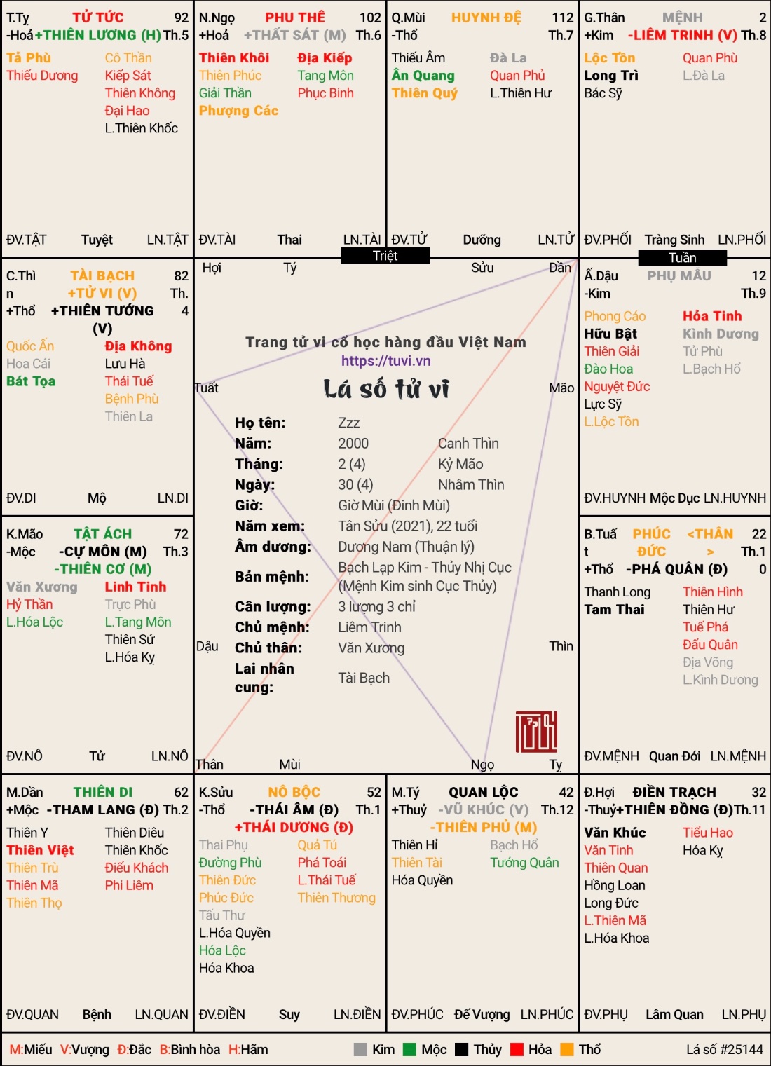 Cho em hỏi lá số này có thành công ko ạ, tốt nhiều hay xấu nhiều ạ, em xin hết !!!! Dương lịch(4/4/2000) 13giờ30