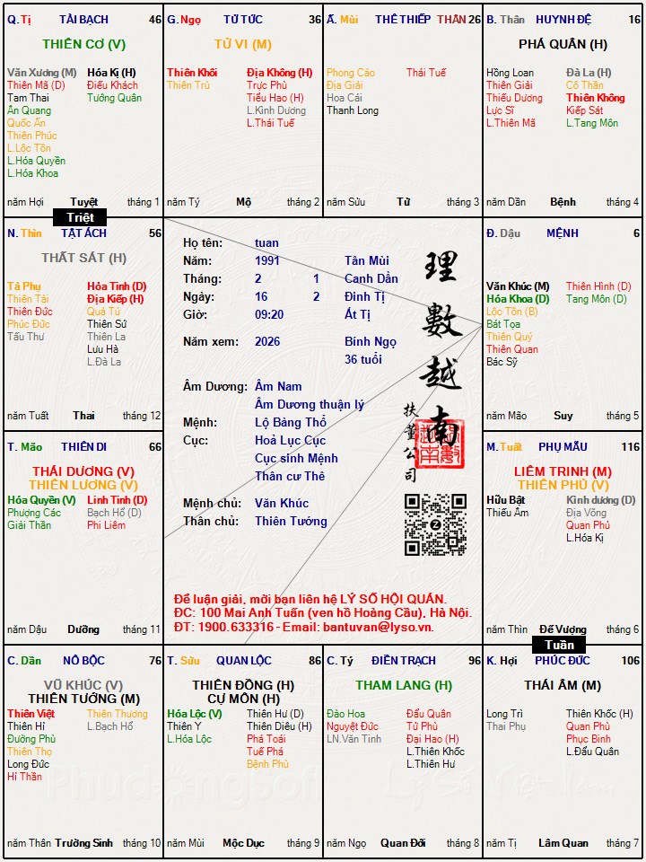 Như câu hỏi, đây là lá số của em (em nhập năm xem là 2016 nhưng phần mềm vẫn an sao lưu 2013