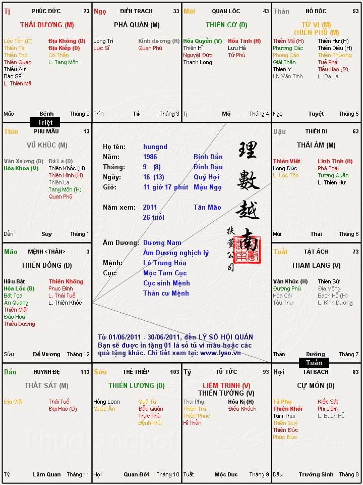 Đây là chuyên mục dành cho việc xem lá số tử vi. Các bài mang tính trao đổi học thuật xin vui lòng đăng trong mục Kiến thức tử vi.