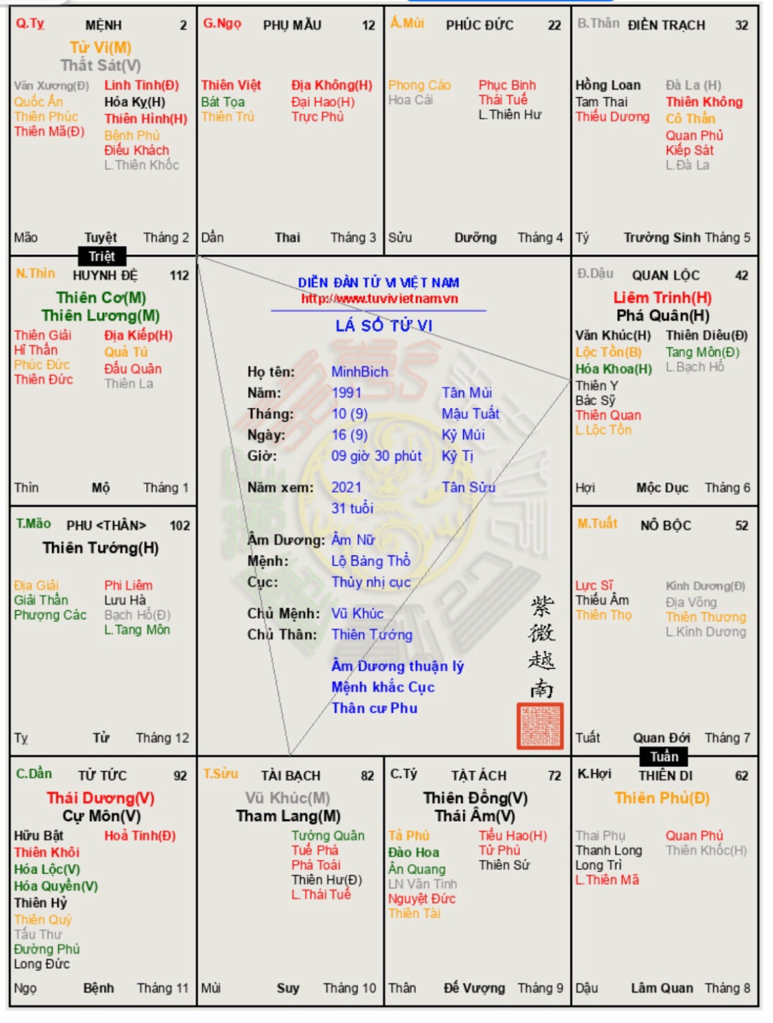 Lá số của em thế này thì làm ngành gì hợp mấy chế?. Thân cư phu nghe bảo có 2 nghề. Em tính 2 nghề là kinh doanh với luật thì có okie ko ạ?!?. Hihi... trc làm trong bank nhưng thấy bức bí quá nên nhảy ra. Chắc do con Tuần án ngữ ngay đấy nên khó xoay chuyển. Xem giúp em cung phu với, thế này em trên cơ chồng hay chồng ăn hiếp em ạ!?)