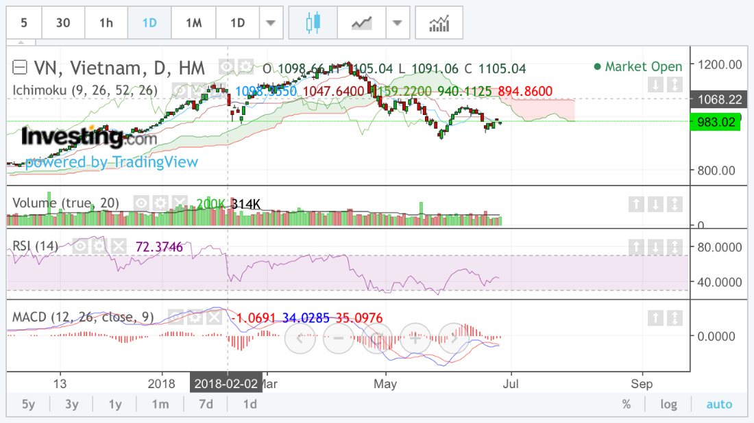 Nếu bạn dùng chart của Ichimoku để xác định điểm mua và bán thì cứ tuân thủ theo sách, mình trích dẫn đoạn BUY và SELL và chart ngày của VNi hiện tại.