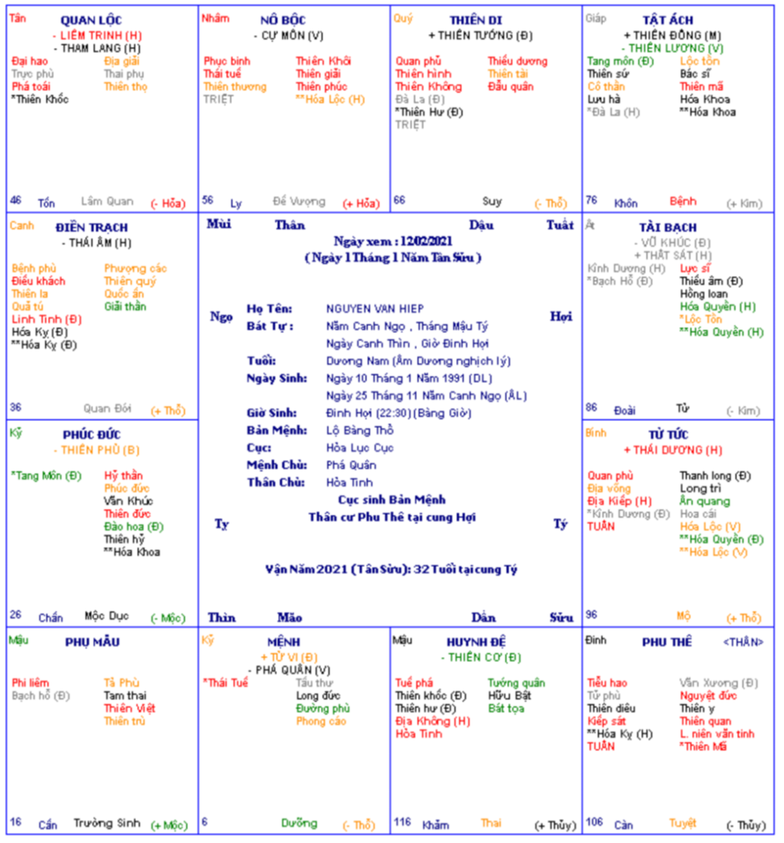 Tôi sẽ lập lá số theo giờ Dần qua ngày 11/01/1991: