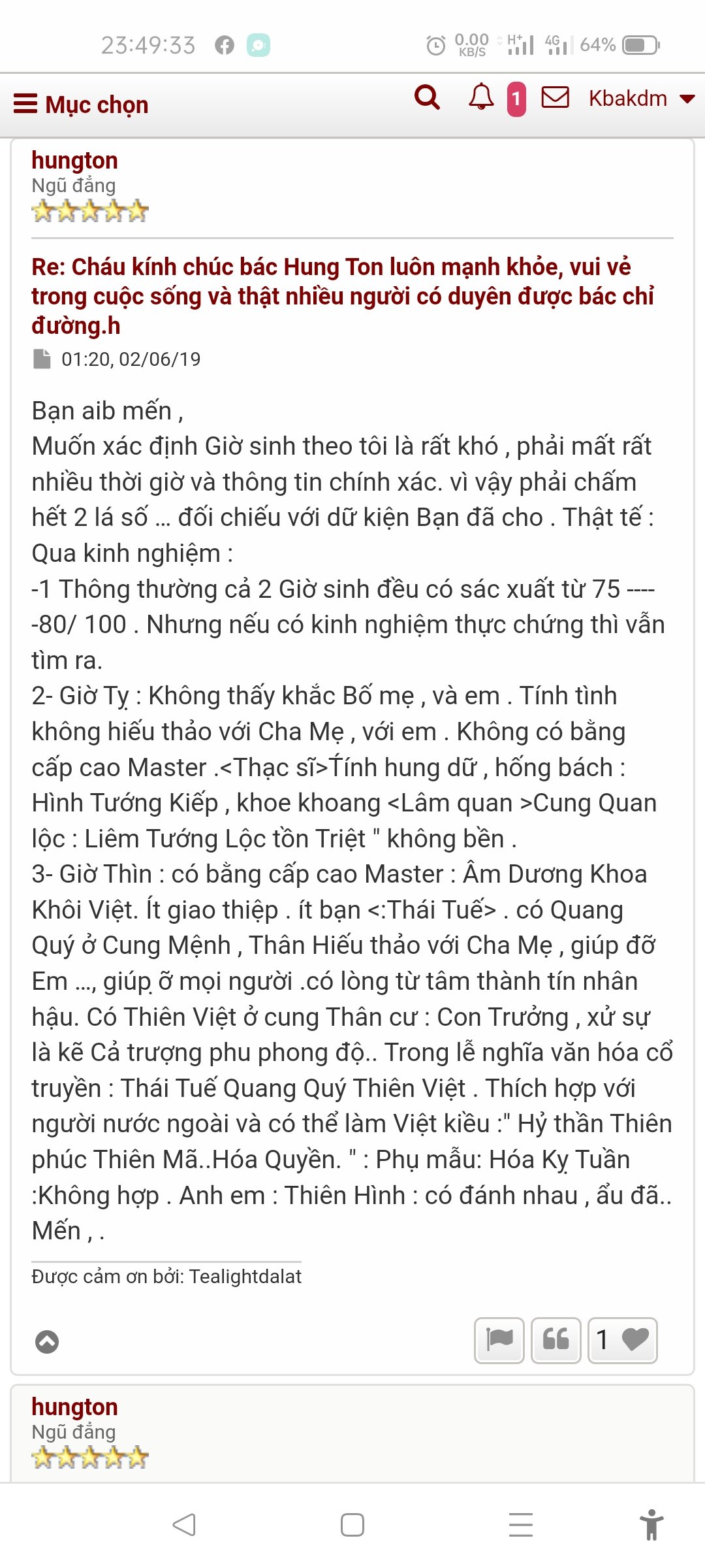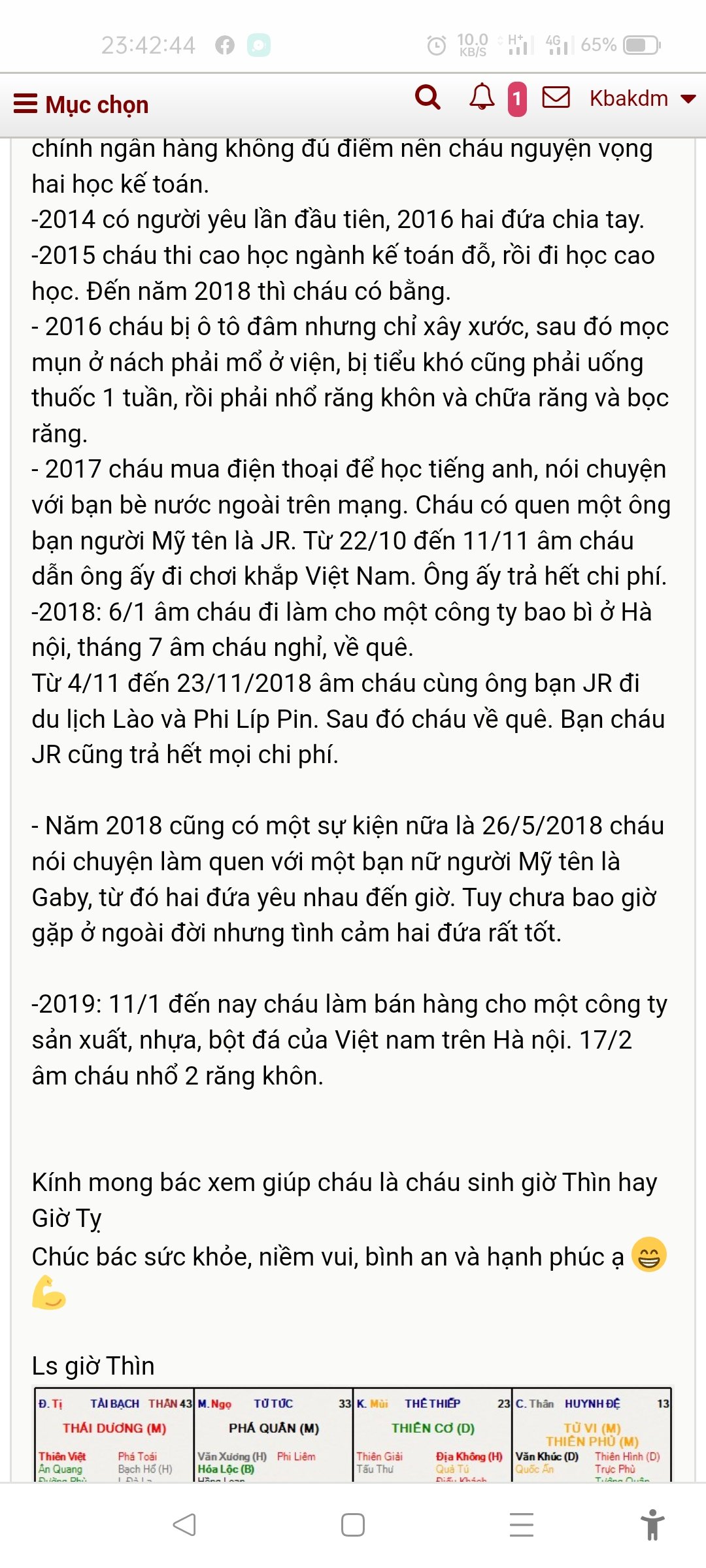 Đại vận (23-32) , Thiên cơ (đ) chủ trong 10 năm sẽ có rất nhiều cơ hội trong công việc lẫn tình duyên. Nhưng đồng thời đi kèm đó là cặp Không kiếp + kình đà + hỏa linh , chủ yếu ở đây ta tập trung sự tác họa của Kình Đà gây ra. Còn Không Kiếp + hỏa linh chỉ là sự cản trở trong TÂM của chính bạn (do nó ở vị trí Hãm , mất hiệu lực). Ở vị trí này tuần triệt cũng đc tháo gỡ nên rất thuận tiện trong công việc xây dựng sự nghiệp. Điển hình như Thiên cơ + tấu thư (làm nghề sale bán hàng cũng tốt, do đc hưởng nhiều cơ hội đưa đến + nói giỏi hay)+ tả hữu + thai tọa+ khôi việt +hóa quyền (nhiều quý nhân, bạn bè đồng nghiệp đối tác đưa đẩy giúp đỡ mà thành công). Tuy rằng vẫn có sự buồn phiền trong TÂM ,cái này do bạn tự giải quyết, chả ai giúp đc cả.(cô quả+ tang điếu tuế).