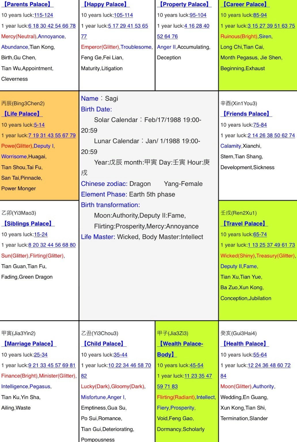 Tò mò thoai bạn ơi chứ ko có thạo j đâu kkk, mình cũng ko biết tiếng Tàu. Sao biết tính tui quyết liệt hay dza, nhiều khi giống con trai lắm nhamrqt đã viết: 13:28, 28/02/18Ghê thiệt, thạo cả tiếng anh tiếng Tàu luôn. Tuổi Mậu thìn tử vi kình dương cư phúc, thân cư tài bạch tham lộc hỏa linh, sau này giàu lắm á. Số hay được quý nhân giúp đỡ. con gái mà tính quyết liệt chuyên quyền quásagi đã viết: 13:00, 28/02/18 Chuyện là nhân dịp Tết rãnh rỗi, mình đã mò lên trang web tử vi của TQ lấy thử lá số, kết quả trạng thái đắc hãm của các sao ở mệnh tài quan khá khác biệt với lá số hiện giờ.