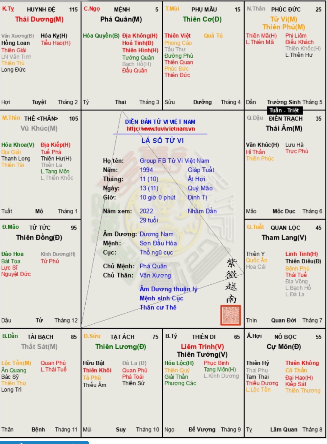 Đây là chuyên mục dành cho việc xem lá số tử vi. Các bài mang tính trao đổi học thuật xin vui lòng đăng trong mục Kiến thức tử vi.