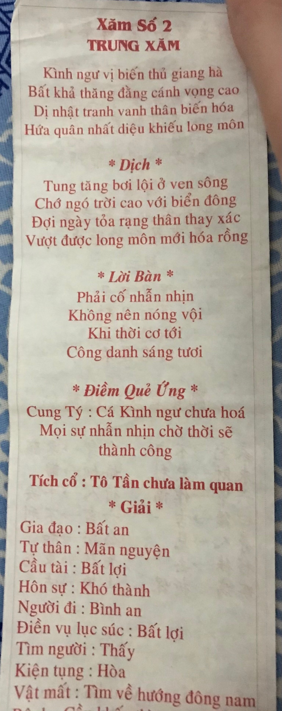 Em có xin được một quẻ xâm không biết có ứng gì trong lá số ko ạ
