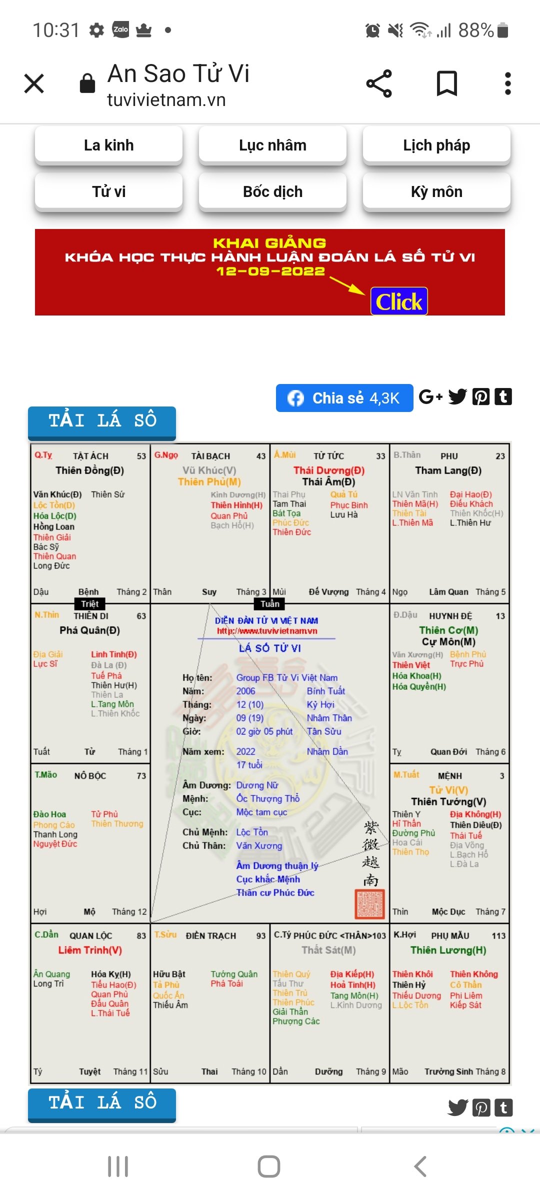Không được đính kèm lá số của trang web khác. Các bài không liên quan sẽ bị chuyển khỏi chuyên mục này.