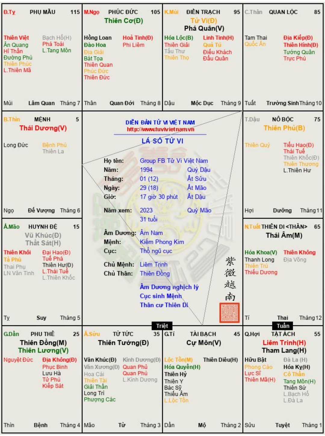 Đây là chuyên mục dành cho việc xem lá số tử vi. Các bài mang tính trao đổi học thuật xin vui lòng đăng trong mục Kiến thức tử vi.