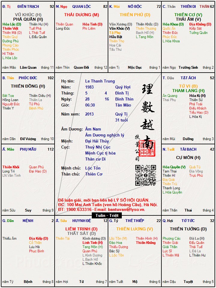 Anh ý tên: Lê Thành TrungSinh ngày: 28/5/1983Giờ sinh: khoảng 5:00- 700