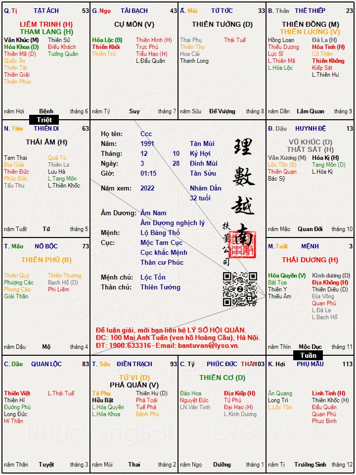 Kính gửi các bác trong diễn đàn, mong được các bác đi qua luận giải đôi lời về công danh, sự nghiệp về lá số này. Năm nay liệu em có đổi việc hay không? Nếu được có nên đổi hay không hay vẫn nên kiên trì với công việc hiện tại. Liệu sau này em có danh chức gì không ạ.